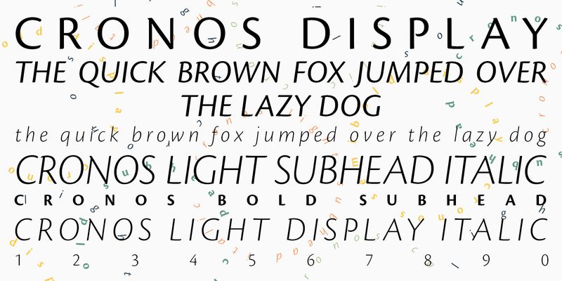 Created by Adobe type designer Robert Slimbach, Cronos is a new sans serif typeface family that embodies the warmth and readability of oldstyle roman typefaces. Because it derives much of its appearance from the calligraphically inspired type of the Italian Renaissance, Cronos has an almost handwritten appearance, setting it apart from most other sans serif designs and making it an effective choice for text composition. The italic design was inspired by early chancery style italics and is both elegant and distinguished. U.S. Patent Design 400,913.