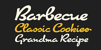Cuisine originated from a how-to lettering book from the 1950s. It suggests the script style found on food and beverage labels in the early 20th century. This creamy font does for food advertising what Bodoni does for haute couture. Its simmering, hand-scribed charm captures the complexity of wine and the robust energy of coffee. It shines on luxe food packaging or high-end menus.