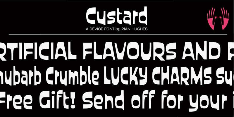 A playful sans with an obround counter and a fair degree of bounce, Custard is an ideal choice for candy wrappers, teen magazines and toy packaging.