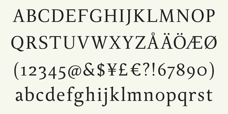 In many aspects, built in a traditional way. Still, some modern details have been implemented which classic designs sometimes lack. The prime goal was to make a strong text font for books and longer texts in general.