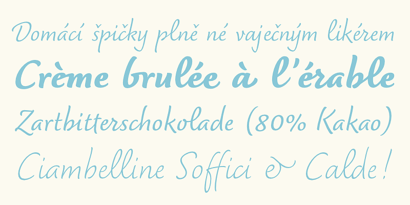 Dolce strikes a balance between the orderly and the informal, resulting in a type of writing that flows naturally. Small caps are included for all-caps setting, as well as extensive language support.
