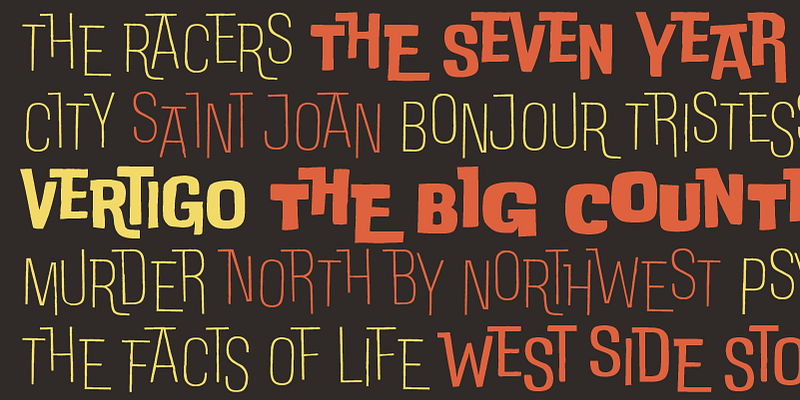 There’s no way for a true lettering aficionado to avoid falling in love with Saul Bass’s vibrating, almost brutal cut-out aesthetics. As an humble homage to Bass’s inspiration and sensibility, and inspired also by cartoon modern lettering and jazzy graphics of the fifties, Cosimo Lorenzo Pancini decided to work on a typeface that could show interlocking rhythm and variation in design without resorting to thousands of ligature special letters, but rather by virtue of its modular structure.