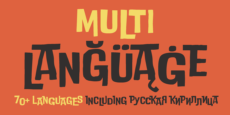 Lighter weights can work for small blocks of text, while the regular and heavy weights show their best in big sizes and display uses. Foreign languages using the Latin alphabet are covered, as well as Russian Cyrillic.