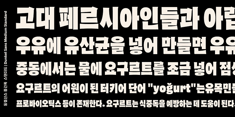 Dunkel Sans Standard retains the bold weight and textured character of the original Dunkel family, while evolving its rounded terminals into clean, symmetrical Gothic forms.