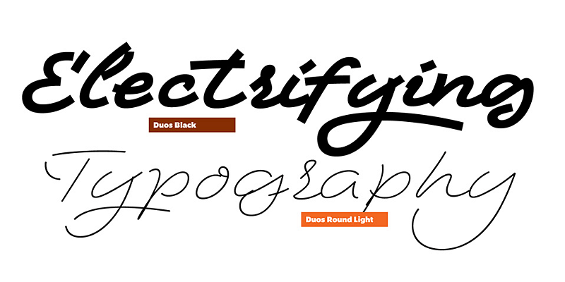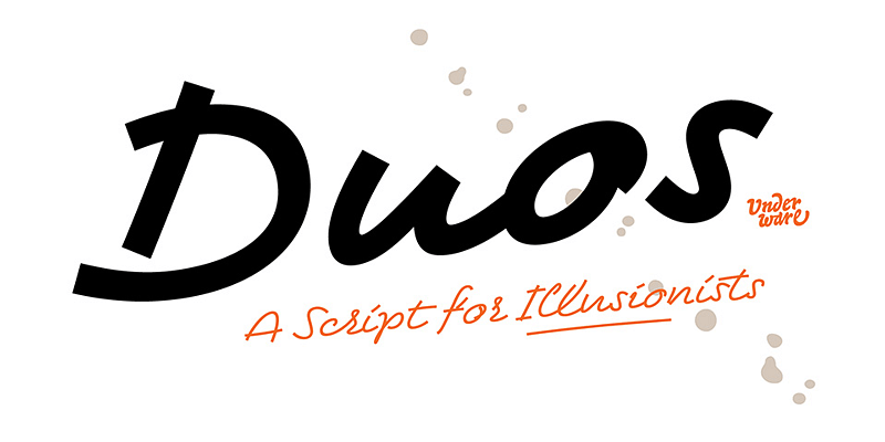 Duos, a script for illusionists, comes in 10 styles. Whatever style you pick: apply this speedy monolinear handwriting font in large sizes, because it is made for catching the attention.