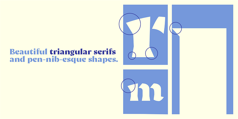 Ella consists of four families: Roman, Uncial, Rustic, and Brutalist, each in two styles: Regular and Bold. These families have different capital styles, which mirror the historical evolution of the Roman script, yet they share a single lowercase set that unifies their distinct characteristics.