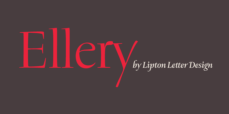 Ellery is an elegant display typeface inspired by Oscar Ogg’s calligraphed book jackets from the ’40s for Atlantic/Little-Brown & Company. This delicate and warm family has a suggested size range of 14pt and higher. The flowing Italic pairs well with the Roman yet is also truly expressive on its own in large display settings. Richard Lipton’s Ellery is ideal for any typography needing distinction and grace. Available in Regular, Medium, Bold, and Extra Bold, with Italics, or as Variable Fonts.