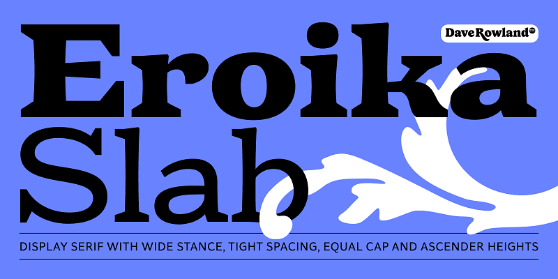 Eroika Slab is a robust display serif intended to be set large. Eroika’s “displayness” stems from its wide stance, tight spacing, equal cap and ascender heights, flared stems, and large x-height. The italics, in particular, are quite unorthodox, with their vertical serif cut-offs and foot serifs where most fear to tread (’scuse the pun). Perfect for book covers, craft beer logos, boxing paraphernalia, and tattoo magazine pull quotes. And probably a whole lot more besides!