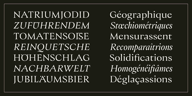 Fonts in the Adobe Fonts library include support for many different languages, OpenType features, and typographic styles.