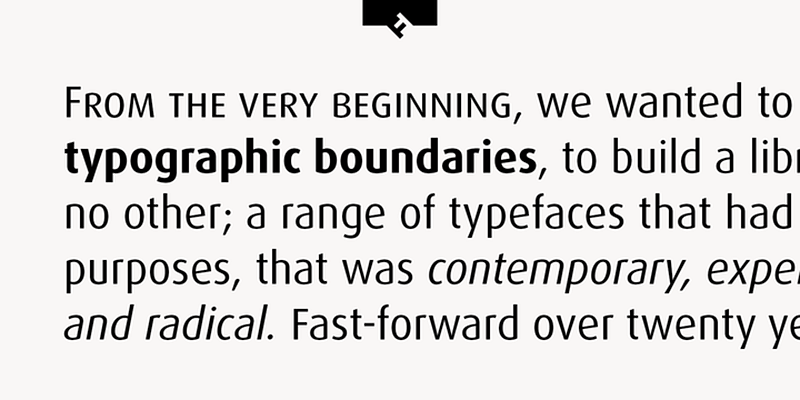 The FontFont Library is the world’s largest collection of original, contemporary typefaces. What makes the FontFont Library unique is its wide variety of outstanding type designs. The spectrum of styles ranges from tasteful, high-quality text faces to distinctive display fonts that reflect current moods and often set new typographic trends.