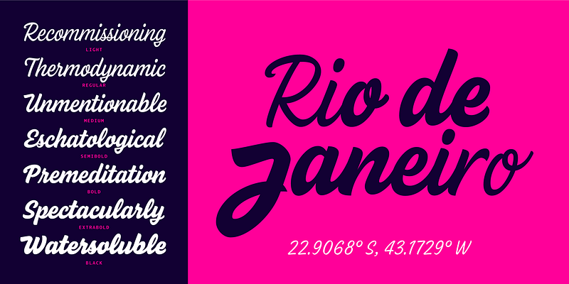 Firula is flourish, ornament, embellishment. It’s swirl, curve, adornment. Firula is our latest font, a typeface that embraces joy. A variable connected script in 7 styles. With simple or cursive capitals, details, and surprises that make each word feel as if it were crafted by the brush.