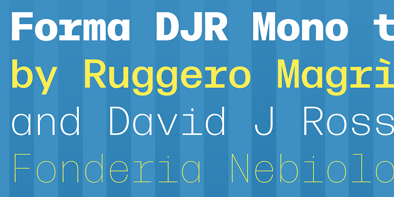 In Forma DJR Mono, Ruggero Magrì has taken David Jonathan Ross’s revival of the classic neo-grot from Nebiolo and brought it in harmony with the limitations of the monospaced grid. On its own, it excels at conveying technical data with clarity and poise; paired with its proportional cousin, it is the perfect option for charts, graphs, and tabular data. It strikes a distinctive tone, preserving the warmth of Forma DJR with inky, rounded corners, while never making you feel like it was produced by a typewriter.