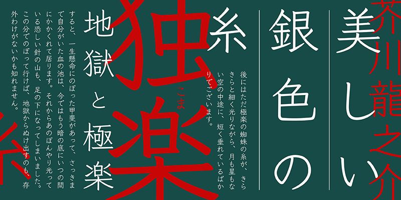 This typeface is characterized by the accented shapes that can be seen in the beginnings and endings of each stroke, and which are typical of a pen script type. Based on handwriting with a pen or pencil, the design has a unique appearance different from other traditional brush script typeface designs such as the Kaisho-tai (Regular script) or Kyokasho-tai (Textbook) styles. This typeface is suitable for body text composition.