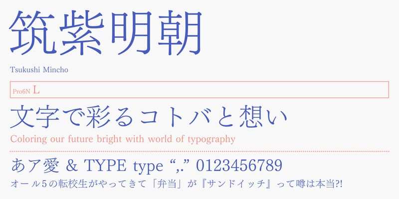 This professional quality Mincho-style typeface is suitable for long texts. It was designed with deep consideration of what a Mincho style typeface design should be, and is based on the essence of traditional type designs from the eras of hot metal type and phototypesetting. Even when used in offset printing, you will get a unique visual effect similar to the ink-bleeding of letterpress printing. Unlike Mincho-style typefaces that have kanji and kana glyphs with larger counter spaces, This typeface retains the strength and weakness of the spaces inherent in each letter and flexibility of the strokes. With these characteristics, text set in this typeface will be readable with a comfortable visual rhythm.
