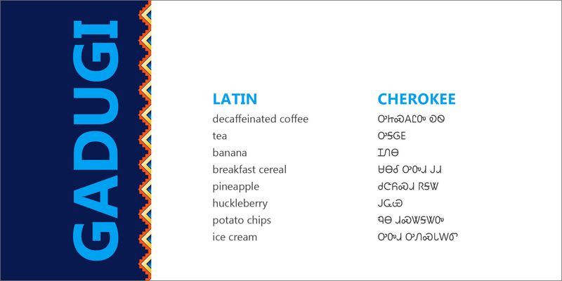 Gadugi is a typeface for typesetting Native North American languages, including Cherokee (ᏅᏁᎯ ᎠᏁᎯᏯ) and the languages that use Unified Canadian Syllabics. The font includes the letters of the Latin alphabet, based on Microsoft’s Segoe typeface. Gadugi can be used for both body text and titles or headlines. It has two weights, Regular and Bold, but no italic styles.