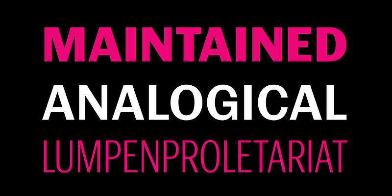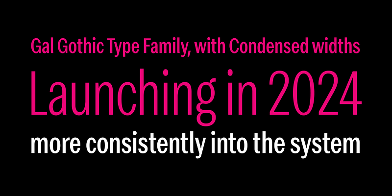 Gal Gothic is a sans serif whose main inspiration is the classic Franklin Gothic by Morris Fuller Benton (1904). Franklin’s very moderate stroke contrast is perhaps its most identifiable formal feature, and probably what gives it its own personality, setting it apart from other grotesques of its time. This contrast, however, is much more noticeable in the heavier weights, while the lighter ones have a certain monolinearity. This is probably due to the fact that Benton only designed the heaviest weight, while the rest were added much later, by the hands of Victor Caruso for ITC (1980). Gal Gothic seeks to take this contrast also to the lighter weights, integrating them more consistently into the system. In addition, its horizontal endings and smooth connection between vertical and curved stems, bring this design closer to the neo-grotesque model and, together with the round dots, give it a very different tone of voice compared to the original reference. With slightly condensed proportions, this display design is ideal for compact and economic titles. Each font has approximately 900 glyphs and offers extensive language support, as well as OpenType features such as small caps, tabular and old style figures, and a variable version with weight and width axes. Its name is a tribute to the Brazilian singer Gal Costa.