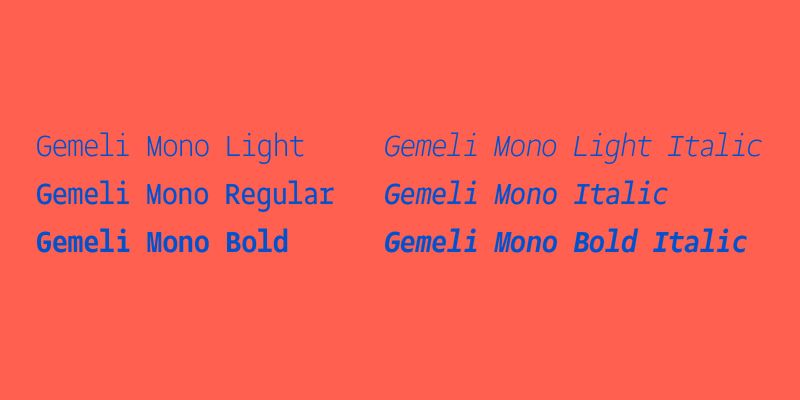 Gemeli is built upon the same simple, human framework as its counterpart Cogito, but its vertical stroke endings lend it a crisper, machined appearance and strikingly different personality.