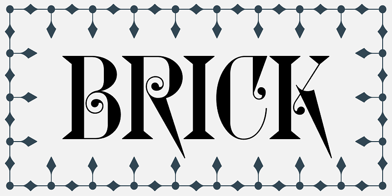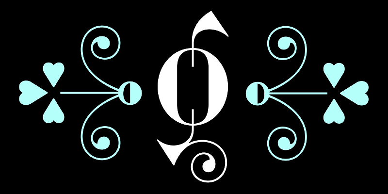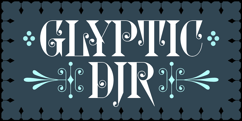 Glyptic DJR revives Herman Ihlenburg’s Glyptic, a decorative Victorian serif designed in 1878 and issued by MacKellar, Smiths & Jordan. My interpretation leans into the frenzied energy of the design, emphasizing the angularity of the wedges and vertical serifs, and then contrasting them against delicate spirals and curlicues. The spacing is tight—optimized for contemporary use. This revival also adds a Uncial-inspired lowercase, lining figures, and borders, none of which were present in the original design.
