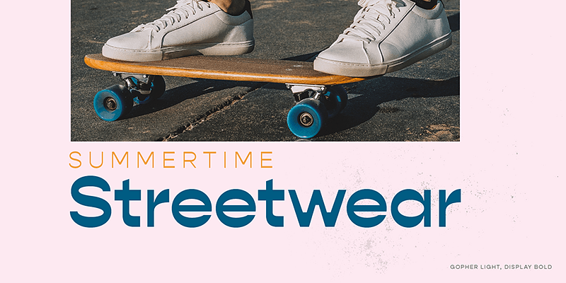 Gopher is a reverse contrast, geometric sans serif typeface. A typical contrast has thicker vertical strokes and thinner horizontal, but Gopher provides a unique look by switching that contrast.