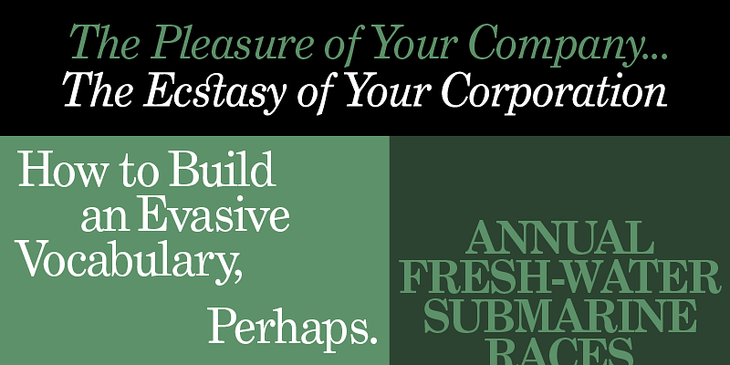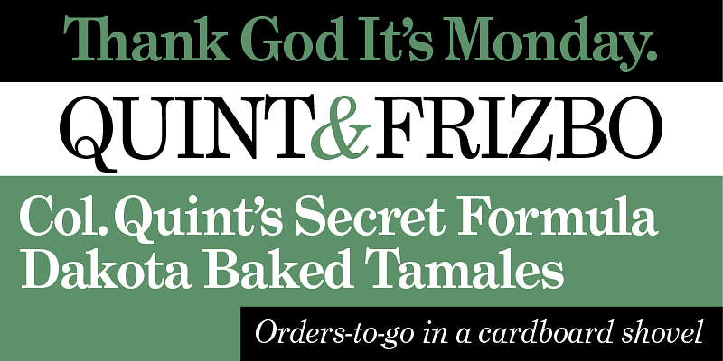 Grad (2004) was designed in the early ’90s by Phil Martin, creator of over 400 typefaces back in the ’60s and ’70s, and founder of Alphabet Innovations and Typespectra. Phil conceived of Grad as a redesign of Century Schoolbook. Editing bitmapped fonts on a DOS PC, he made design changes, some subtle and some obvious. He also added features like small caps, old style figures, ligatures, and swash capitals. Working with Phil, I brought Grad into the 21st century as a family of three feature-rich OpenType fonts.