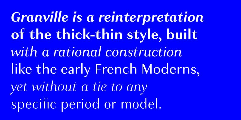 Granville is a reinterpretation of the thick‐thin style, built with a rational construction like the early French Moderns, yet without a tie to any specific period or model.