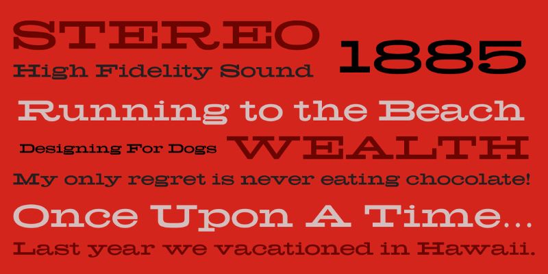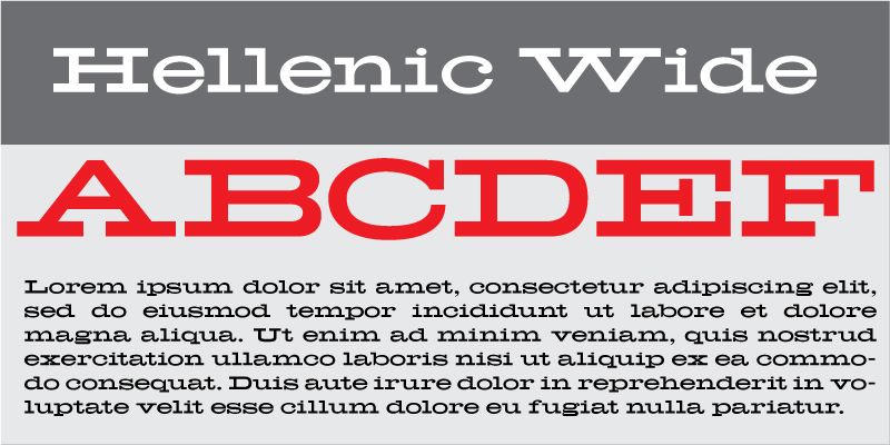 Hellenic Wide is a slab serif typeface digitally revived for the Jukebox library from the ATF original. It’s strong horizontal letterforms give it a classic mid 20th century look.