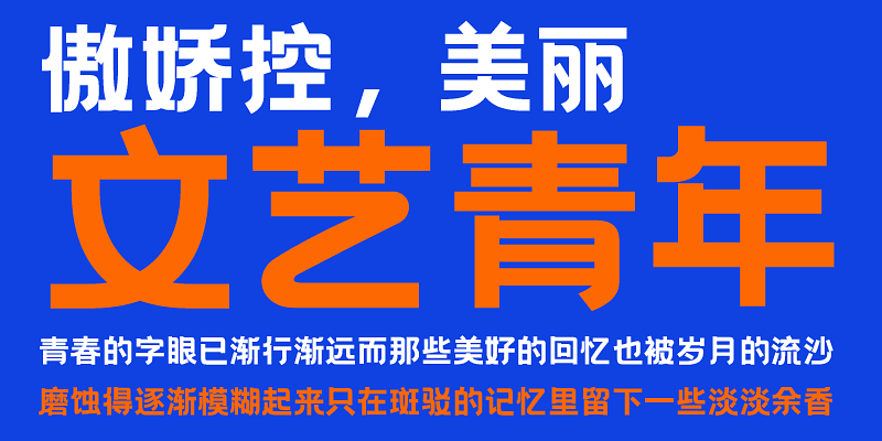 This font incorporates the principles of graphic design into Hēi Tǐ. Through an elegant arcing process, the structure of the typeface is square and full of tension.