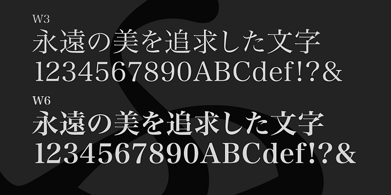 Latin alphabet and numbers have all been originally designed so that the weights of typeface and the flow of the baseline between Japanese and Latin characters are extremely consistent. Of particular note, vertically formatted text that mixes both Japanese and Latin characters can be beautifully rendered using only this typeface.