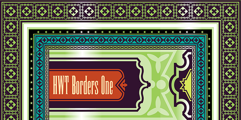 HWT Borders One contains decorative borders and corner pieces based on 19th century wood type catalogs. These can be modularly assembled in almost any size dimensions needed.