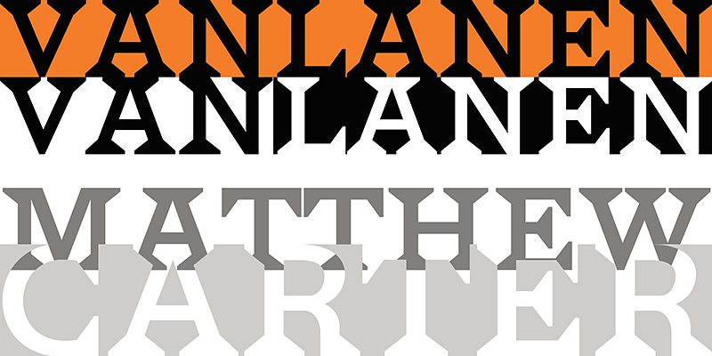 HWT Van Lanen was designed to be a two-part chromatic type to be cut specifically in wood. The design by Matthew Carter recalls Antique Latin wood type, but with a refined sensibility.