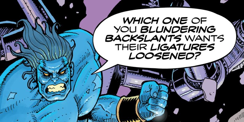 Indoor Kid is a variable-first comic book superfamily designed by DJR with comics writer/editor/publisher Ellis Bojar. It has all the weights and widths and accoutrements that a typographer might expect from a workhorse sans, but is designed specifically for a wide range of comics dialogue and caption styles. Its flexibility gives you the power to adjust the rhythm of the storytelling to fit the dialogue in your story, and its special Emphasis axis makes it easy to enlarge and vertically center words or phrases within a block of text, a longstanding comic book practice (especially for Bold Italic text).