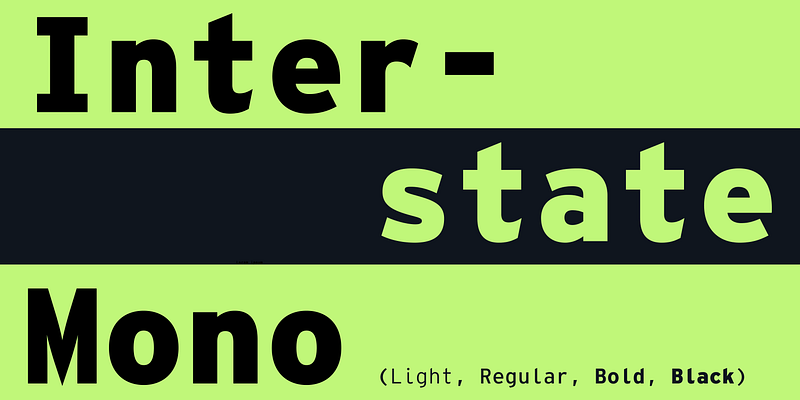 Efficient and gruff, Interstate has become a favorite for branding, packaging, publications, and more. The family is a reinterpretation of Highway Gothic, which has been the official typeface for American highway signage for decades. Its design is ultimately based on signage alphabets developed in the late 1940s by Dr. Theodore Forbes, assisted by J.E. Penton and E.E. Radek. The family was expanded to include full support for Central and Eastern Europe languages, as well as Cyrillic and Greek.