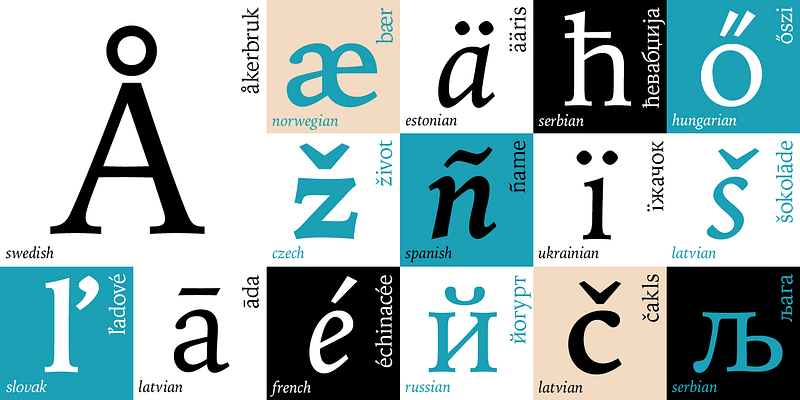 Fonts in the Adobe Fonts library include support for many different languages, OpenType features, and typographic styles.