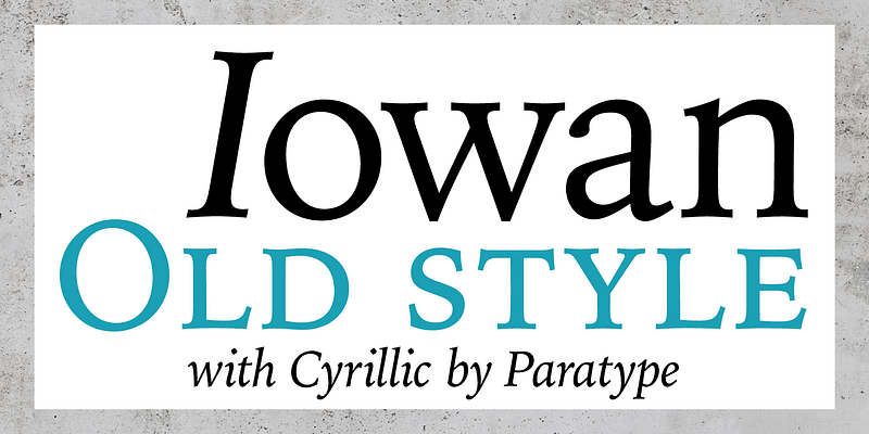 Iowan Old Style was designed for Bitstream in 1990 by noted sign painter John Downer. Iowan Old Style is a hardy contemporary text design modeled after earlier revivals of Jenson and Griffo typefaces but with a larger x-height, tighter letterfit, and reproportioned capitals. Cyrillic letters were designed by Natalia Vasilyeva in 2016. Iowan Old Style Cyrillic was released by Paratype in 2017.