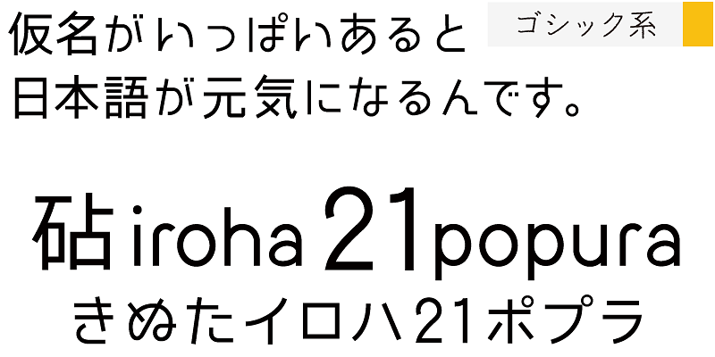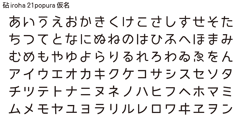 Iroha 21popura’s horizontal and vertical elements were designed to have a “futuristic” look. The enclosed areas of kana characters have circular shapes, which highlight the cuteness of the design.