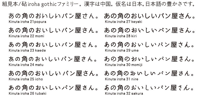 Kinuta Font Factory’s believes that kana characters are the origin of written words in Japanese, and we think that improving kana characters will make Japanese text more attractive. On average, 60% of Japanese text consists of kana characters – changing the shape of these characters changes the visual appearance of the text. The possibilities for typographic expression using simple, dynamic and curvilinear kana characters are vast, and the richness of Japanese text depends on kana characters. This is the reason why Kinuta Font Factory offers many variations of kana typefaces.