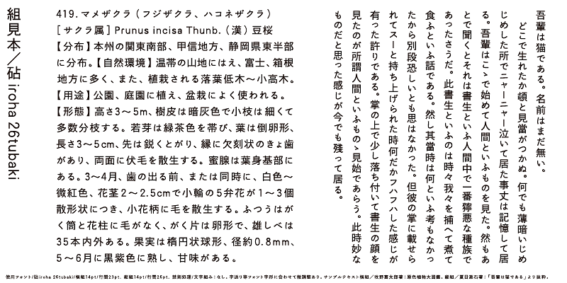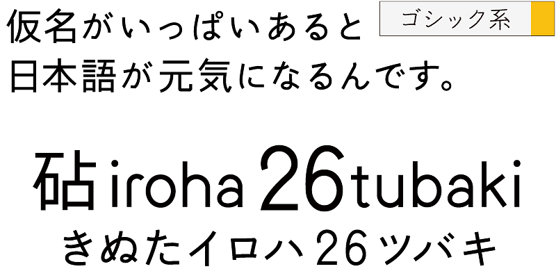 Iroha 26tsubaki is a timeless and versatile typeface with a flavor of brush-script handwriting to bring a maturity to the typeface. Combining Iroha 26tsubaki with a modern style kanji design creates a harmonious synergy.