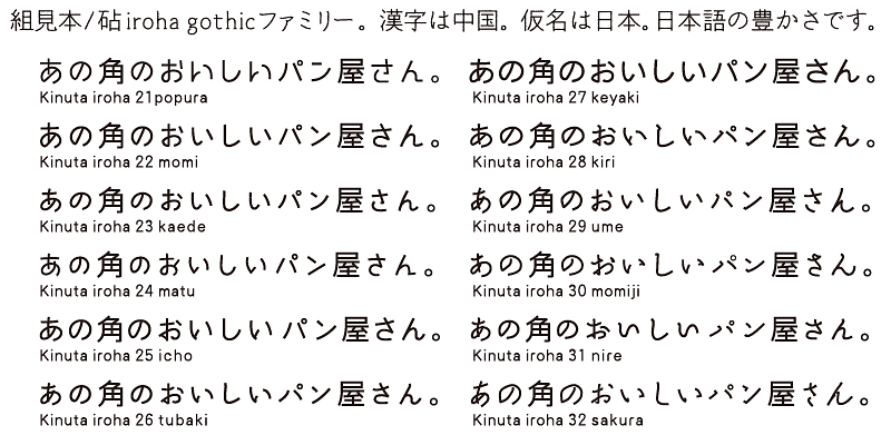 Kinuta Font Factory’s believes that kana characters are the origin of written words in Japanese, and we think that improving kana characters will make Japanese text more attractive. On average, 60% of Japanese text consists of kana characters – changing the shape of these characters changes the visual appearance of the text. The possibilities for typographic expression using simple, dynamic and curvilinear kana characters are vast, and the richness of Japanese text depends on kana characters. This is the reason why Kinuta Font Factory offers many variations of kana typefaces.