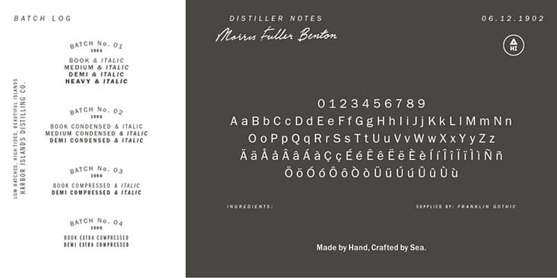 Franklin Gothic, one of the most popular sans serif types ever produced, was designed by Morris Fuller Benton in 1902 for American Type Founders. In 1979, under license with ATF, Vic Caruso began work on more weights of the design for ITC. This version adheres closely to the subtle thick and thin pattern of the original design; the slightly enlarged x-height and condensed proportions of the new version result in greater economy of space. This typeface is a standard choice for use in newspapers and advertising. In 1991, David Berlow completed the family for ITC by creating compressed and condensed weights. ITC Franklin Gothic Compressed is designed especially to solve impossibly tight copyfitting problems, while maintaining high legibility standards. ITC Franklin Condensed provides medium weights of narrow proportions. It is frequently seen in newspapers, advertisements, posters, and anyplace with space restrictions.