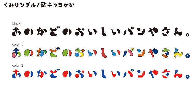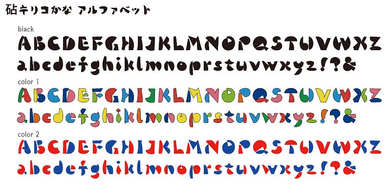 This typeface looks as if it were composed not of letter forms but graphical elements. You can enjoy single characters alone, composing longer text, and using color glyphs. There are three versions: Black, Color1 and Color2.