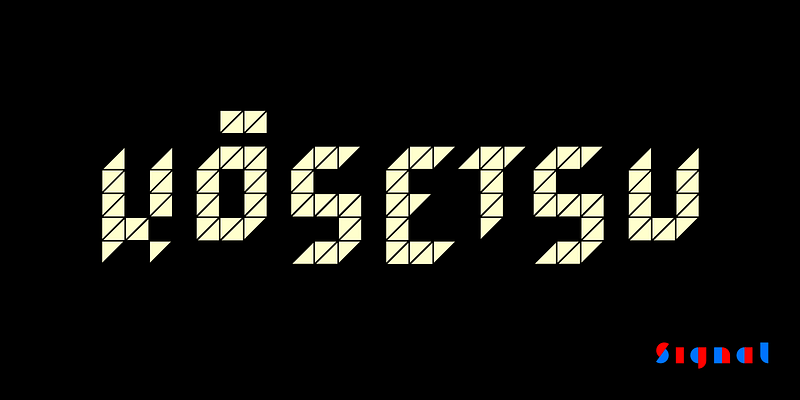 Kōsetsu (Japanese for ‘snowfall’) is an exercise in restraint, a grid-based all-caps modular typeface assembled from a single isosceles right triangle. Its blocky, angular forms reference both broad-nibbed calligraphy and 8-bit video games. Letters vary in height, creating a syncopated rhythm which users can control with a set of alternates.