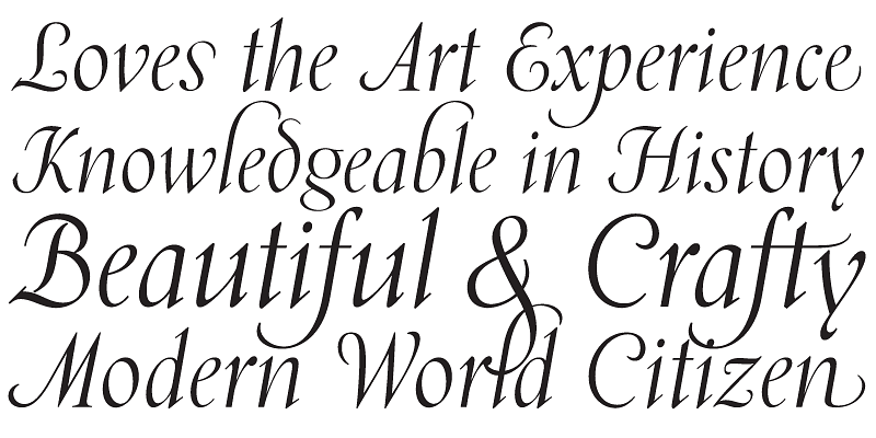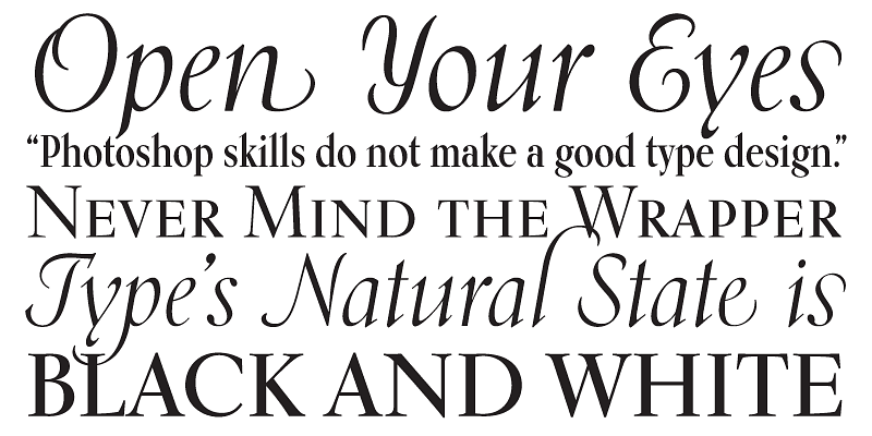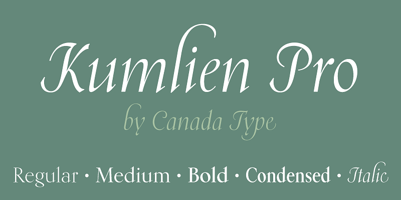 Transitional in appearance and idiosyncratic in detail, Kumlien Pro draws on the oldstyle theme but also employs a deco aesthetic in its upright weights, and uses a rare calligraphic dynamic for its stunning, almost postmodern italic.