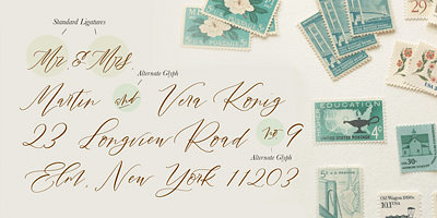 La Bohemienne is a graceful modern calligraphy script. It’s Opentype features replicate the personality of handcrafted penmanship. With clean elegant lines, it’s a natural choice for weddings and sophisticated events.