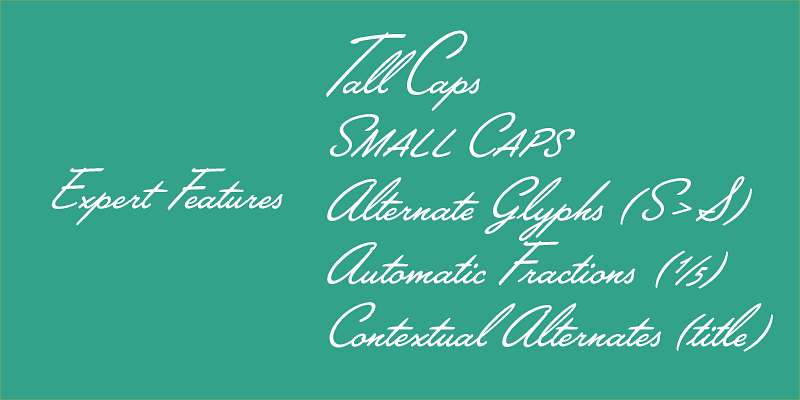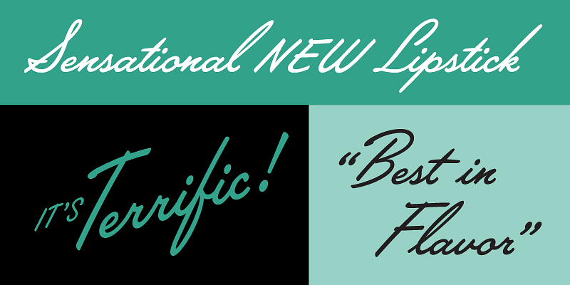 Lakeside (2008) is a flowing 1940s-style brush script, inspired by hand-lettered titles in Otto Preminger’s classic 1944 film noir movie “Laura.” Lakeside uses OpenType magic to automatically mimic real Script lettering, choosing the best letter shapes based on where they fall in a word and what letters are nearby. It also includes three sizes of capitals: Normal capitals for typical settings, tall capitals for a more elegant effect, plus a small, plain set of capitals for setting in all caps, something not usually possible with script faces.