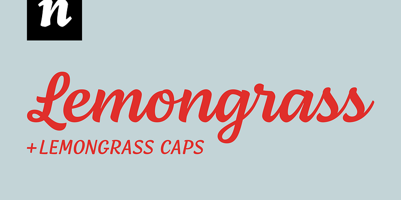 Lemongrass is a connected script typeface for display use. It was inspired by brush lettering and the ocean. It has low contrast and smooth connections. It can be used for branding and packaging where it will shine.