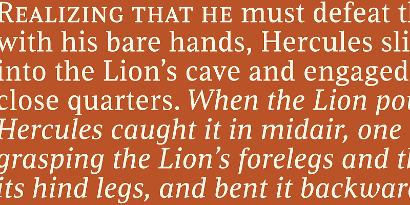 Leo is an economic magazine and book face meant for use in sizes suitable for immersive reading, with different cuts optimized for different body copy size ranges, like footnotes and legal text. Its mantra is “grace through austerity”.