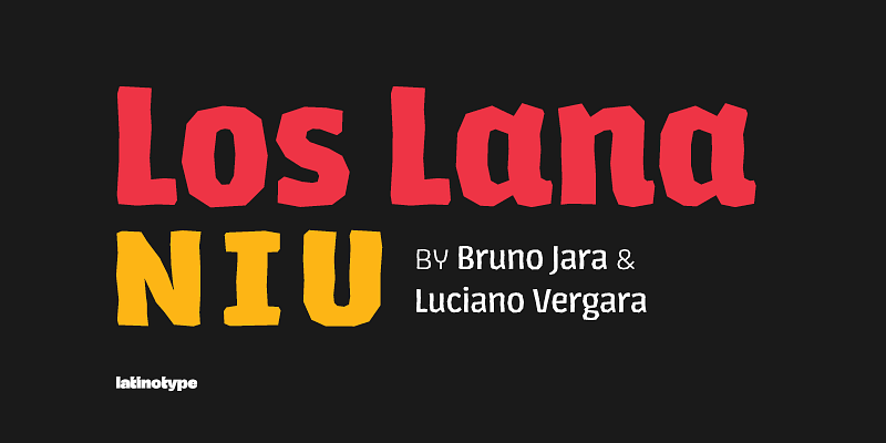 Los Lana Niu Pro is based on Los Lana (2007). This new version preserves the rustic aesthetics of the original typeface, but it lacks curves and it visually looks as if it was an irregular font.