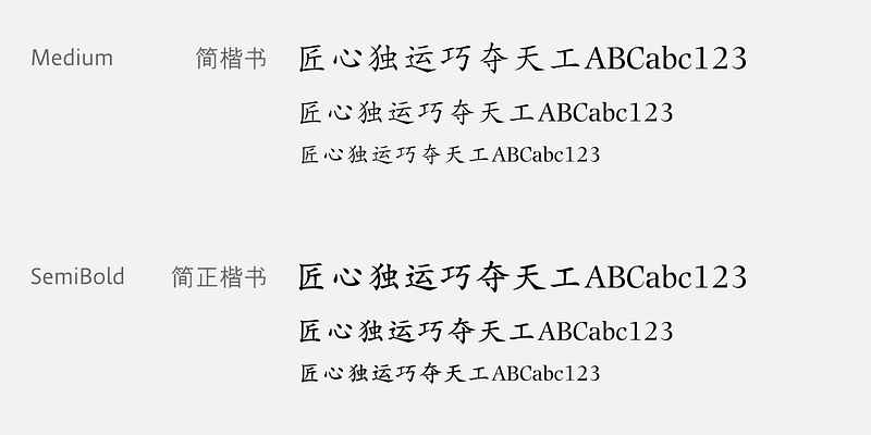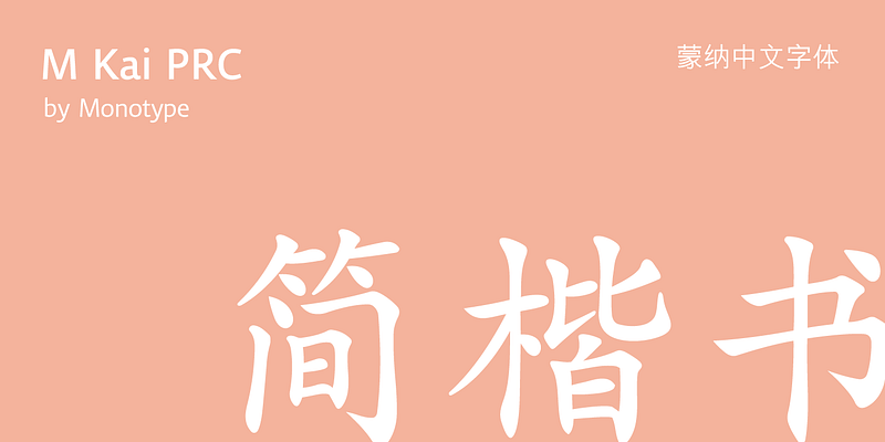 M Kai is a design inspired by the popular Kaiti developed in contemporary China.MKai adopts many features of Kaishu, one of the many Chinese writing scripts and calligraphic style. Yet writing style and constructions have been well-unified to meet quality as typeface. Its strokes has relatively heavier stroke beginning and finishing, as well as thinner middle part. It is catered for fine print with little conglutination. Its medium weight makes it more visible at distance and pretty versatile in use. Zhonggong are tightly built with ample character spacing for good individual character recognition.It is best suited for formal body text, set upright (non-slanted), non-condensed.