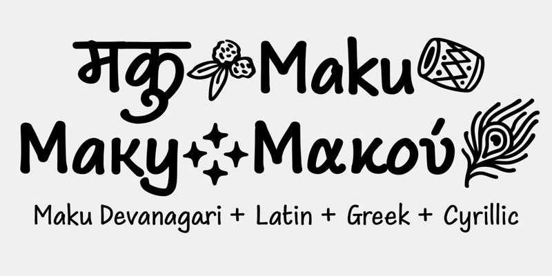 For designs requiring additional flair, Maku Devangari offers swash versions of all main letters and special initial and final forms for words. The typeface also includes an extensive collection of dingbats and illustrations that complement its expressive style. Available in four weights, Maku adds warmth and handcrafted charm to any project.