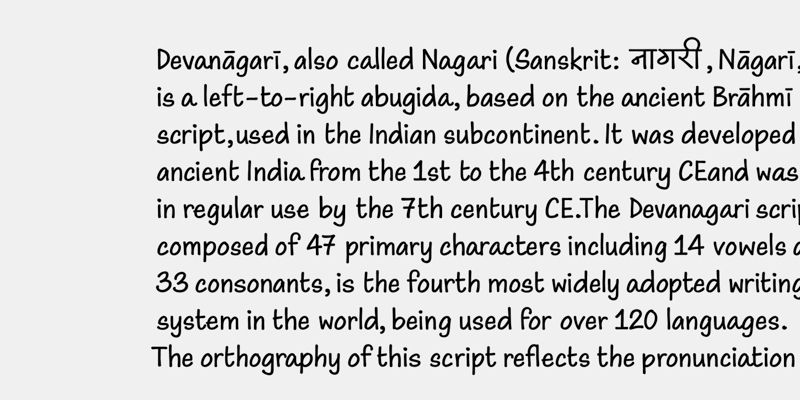 Maku brings the authentic feel of handwriting to digital typography with its lively characters to the Latin, Devangari, Greek, and Cyrillic scripts. Leveraging advanced font technology, each character appears uniquely drawn, with multiple glyph variants that automatically alternate to eliminate repetition and create a naturally handwritten appearance.